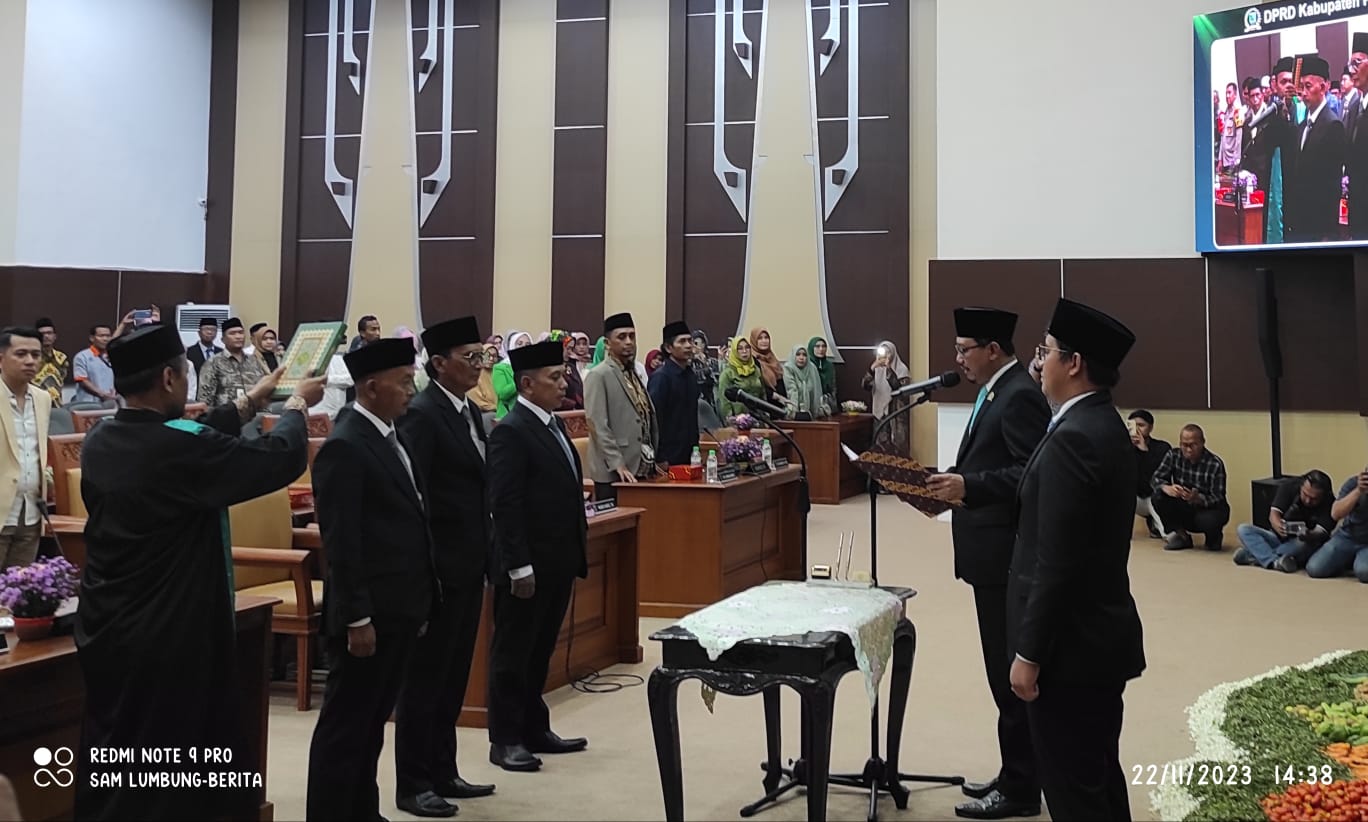 Pasuruan Lumbung-berita.com Dewan Perwakilan Rakyat Daerah (DPRD) Kabupaten Pasuruan menggelar Rapat Paripurna, agenda Pelantikan dan Pengambilan Sumpah/Janji Pengganti Antar Waktu (PAW) Anggota DPRD Kabupaten Pasuruan Sisa Masa Jabatan Tahun 2019 – 2024, Rabu (22/11/2023). Mereka yang di PAW yakni KH Saifulloh Damanhuri, Faizaturrohmah (Neng Faiz) dan Aminudin (Gus amak), mereka masih dalam ikatan satu