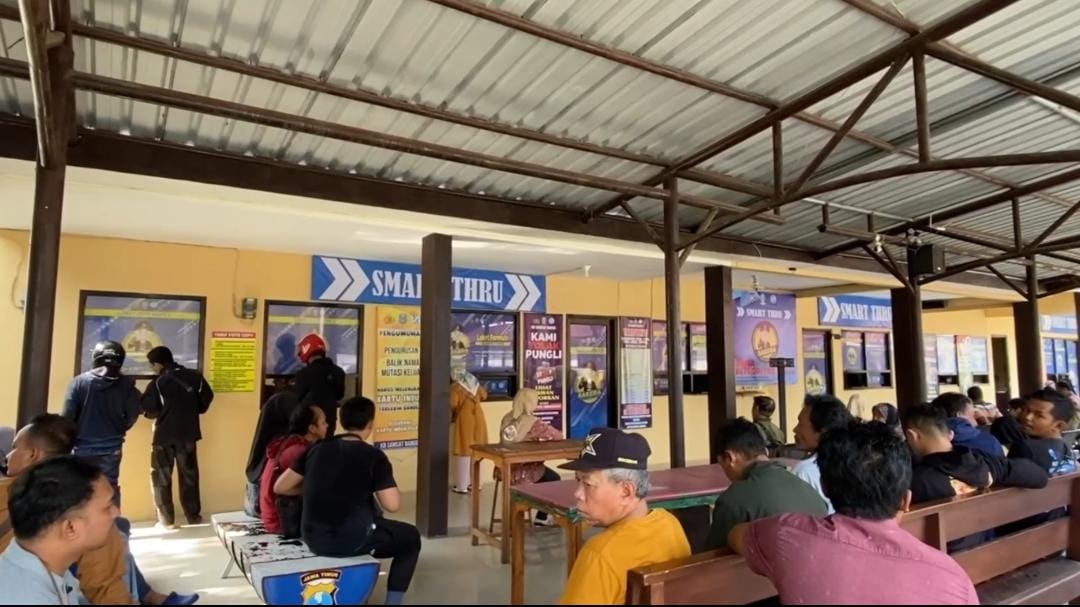 Pasuruan_Lumbung-berita.com Kantor Bersama (KB) Samsat Bangil ciptakan pelayanan Smart Thru, layanan ini merupakan hasil explore kecerdasan petugas samsat dalam meningkatkan layanan perpanjangan pengurusan STNK setiap lima tahun. Berbeda dengan sebelum adanya pelayanan Smart Thru, para wajib pajak harus berpindah tempat ke tempat pelayanan lain, dimana tempatnya agak berjauhan dan itu akan memakan durasi waktu. Layanan